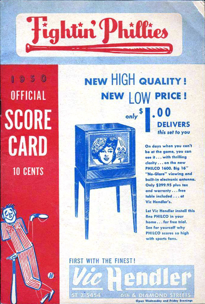 1950s Philadelphia Phillies Game Publications April 11, 2026 Leave a Comment on 1950s Philadelphia Phillies Game Publications Posted in Baseball, Major League Baseball back to Philadelphia Phillies Click on any gallery image for the full-size version. Toggle Regular SeasonPostseason1950 World Series: vs. New York Yankees Regular Season 1950 1951 1952 1953 1955 1957 1958 1959 Postseason 1950 World Series: vs. New York Yankees Date: October 4 & 5, 1950Venue: Shibe ParkPeople: n/aCover Artist(s): n/a