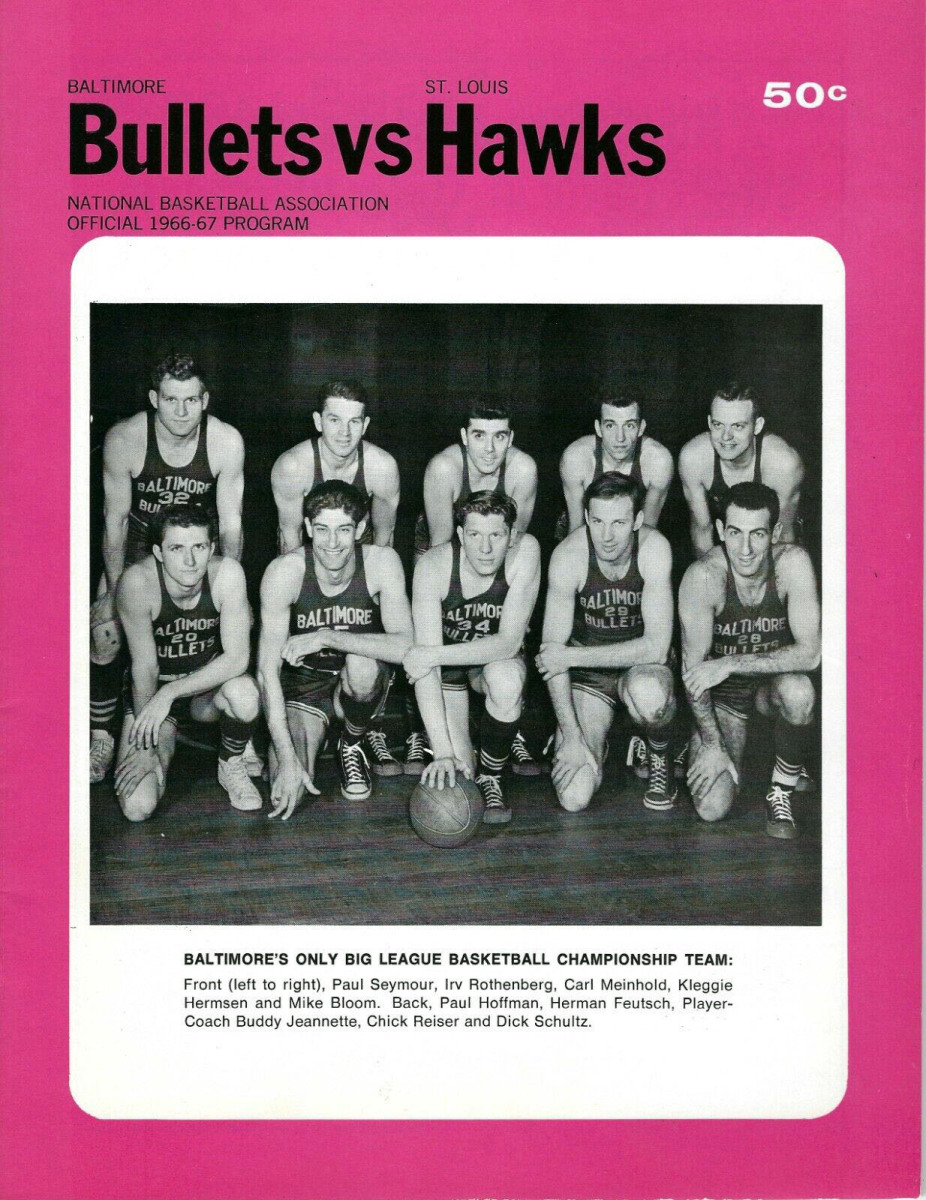 People: Gene Shue, Gus Johnson, Ben Warley, Don Ohl, Johnny Egan, John Barnhill, Kevin Loughery, Bob Ferry, LeRoy Ellis, Ray Scott, Jack Marin, Johnny Green, Jerry Sloan, Paul Seymour, Irv Rothenberg, Carl Meinhold, Kleggie Hermsen, Mike Bloom, Paul Hoffman, Herman Feutsch, Buddy Jeannette, Chick Reiser, Dick Schultz
