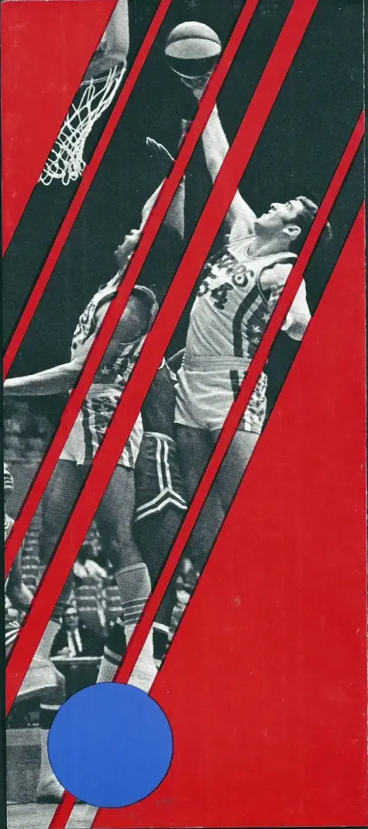 Seen in this brochure are center Craig Raymond (#54), Denver’s Spencer Haywood (#24 for the Nuggets in 1969-70 but moved to the NBA in ’70-’71), and Washington’s Rick Barry (Caps #24).