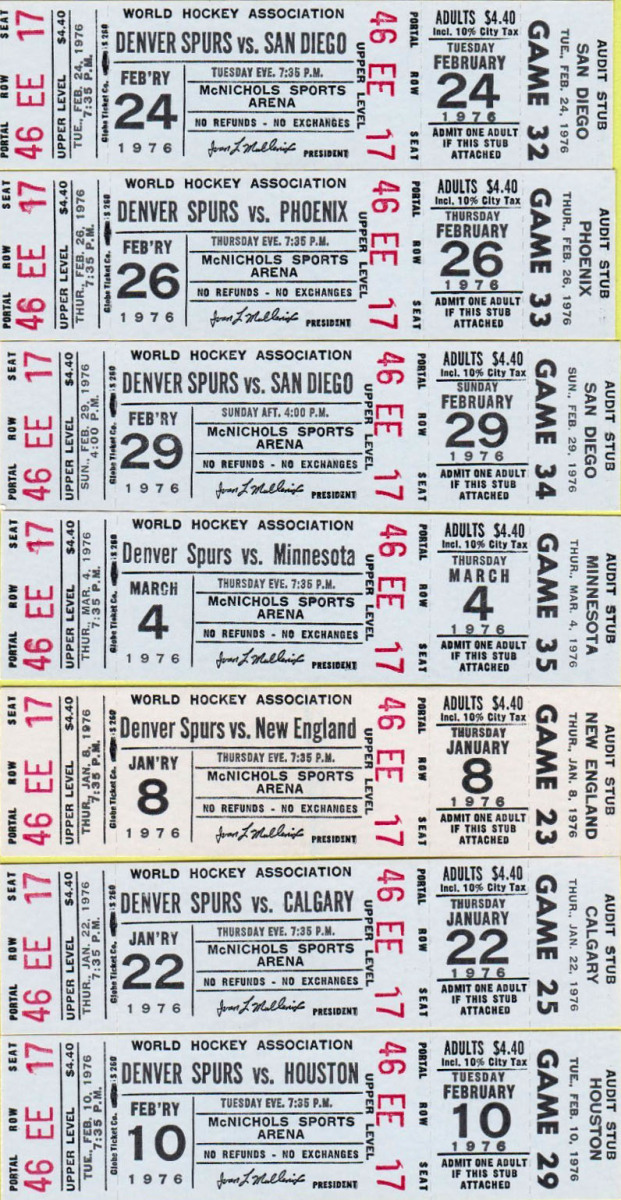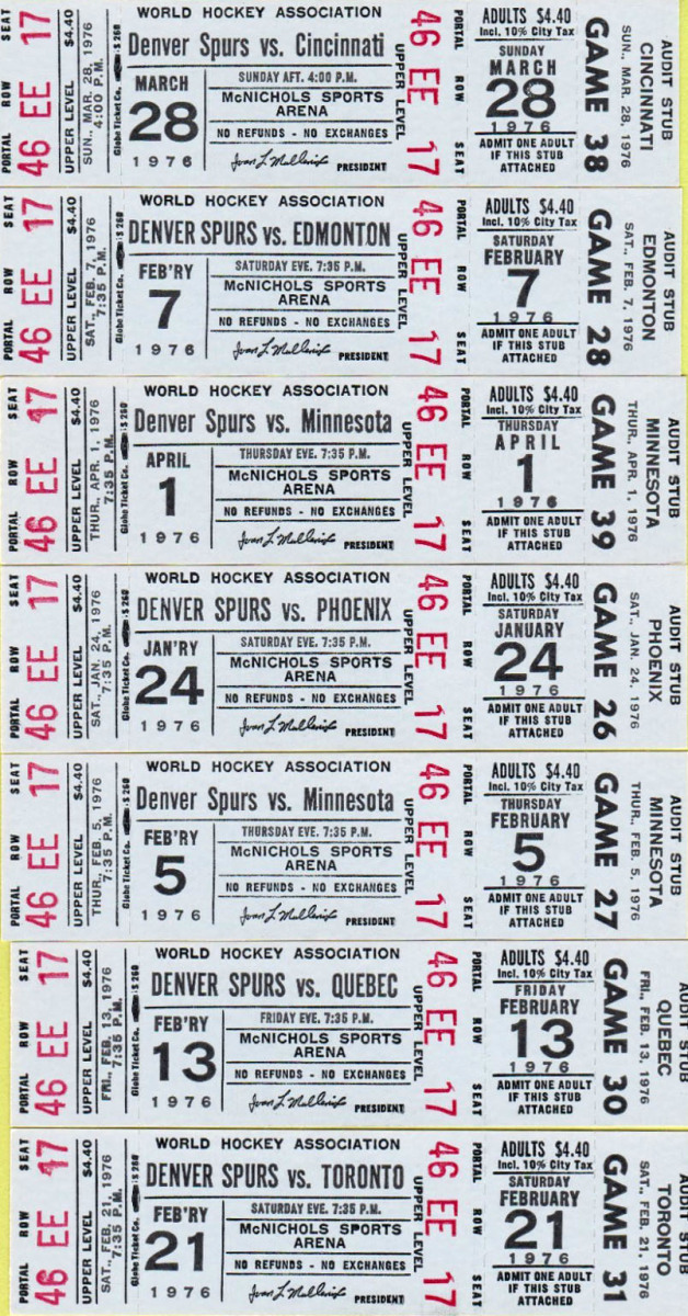 1975-76 Denver Spurs Game Publications March 3, 2026 Leave a Comment on 1975-76 Denver Spurs Game Publications Posted in Ice Hockey, World Hockey Association back to Denver Spurs Toggle Regular Seasonundated home programunused tickets Regular Season undated home program Venue: McNichols Sports ArenaPeople: Ralph BackstromCover Artist(s): n/a unused tickets