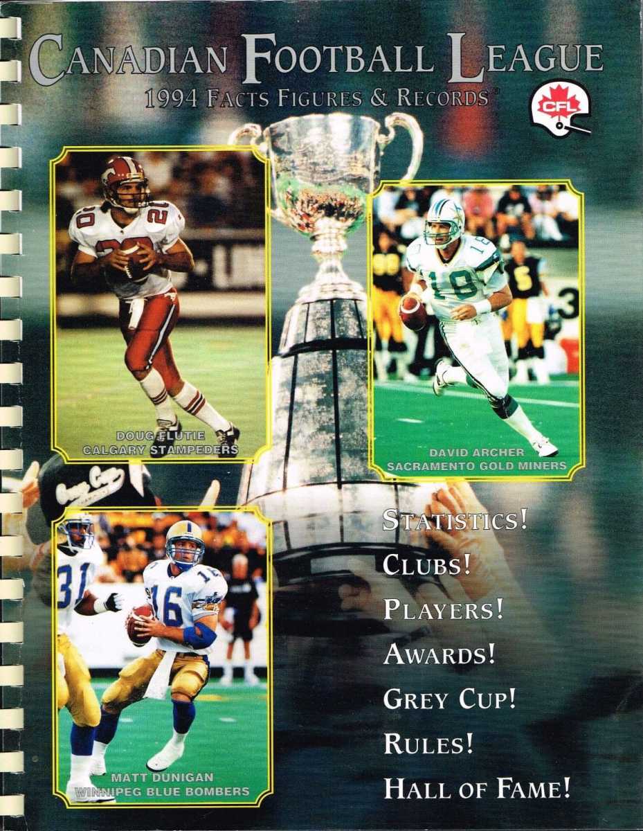 Canadian Football League Media Guides and Yearbooks November 29, 2024 Leave a Comment on Canadian Football League Media Guides and Yearbooks Posted in Canadian Football, Canadian Football League Click on any gallery image for the full-size version. Toggle 1970s1990sPeople 1970s 1990s People 1992: Doug Flutie, Raghib Ismail 1993: Doug Flutie 1994: Doug Flutie, David Archer, Matt Dunigan 1995: Doug Flutie, Gerald Wilcox, Matt Goodwin