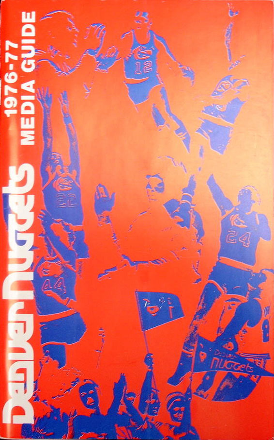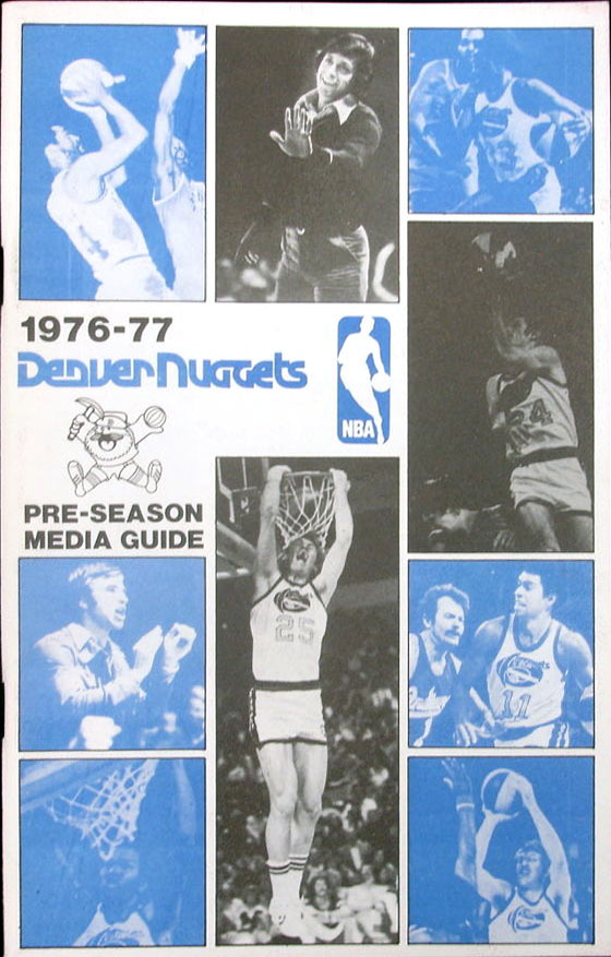 • 1976-77 preseason media guide: David Thompson (#33), Bobby Jones (#24), Larry Brown, Dan Issel (#25), Chuck Williams (#11)