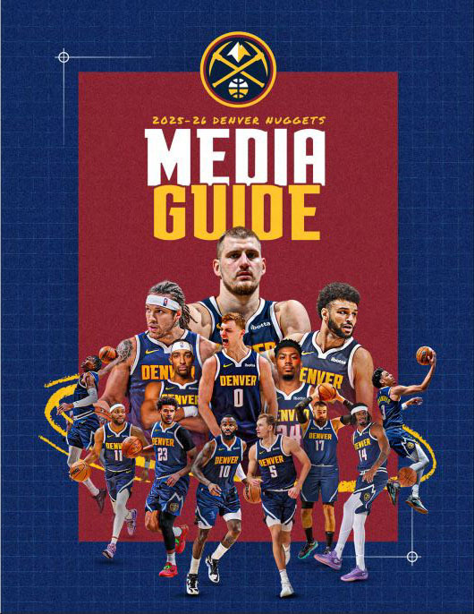 • 2025-26 media guide: Nikola Jokić (#15), Christian Braun (#0), Bruce Brown (#11), Cameron Johnson (#23), Tim Hardaway Jr. (#10), Hunter Tyson (#5), Jonas Valančiūnas (#17), DaRon Holmes II (#14), Julian Strawther (#3)