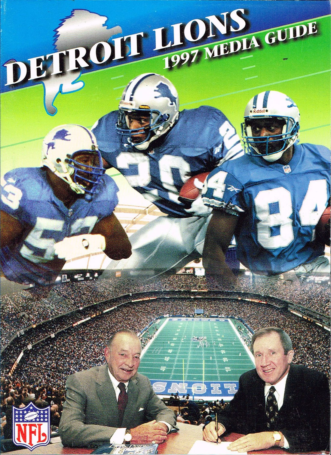 - 1997 media guide: Kevin Glover (#53), Herman Moore (#84), Barry Sanders (#20), William Clay Ford Sr., Bobby Ross