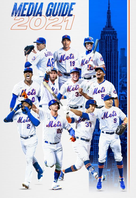 - 2021 media guide: Jacob deGrom (#48), Luis Rojas (#19), Francisco Lindor (#12), Marcus Stroman (#0), James McCann (#33), Carlos Carrasco (#59), Dominic Smith (#2), Pete Alonso (#20), Michael Conforto (#30), Brandon Nimmo (#9)