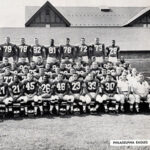 PHILADELPHIA, PA.–Ned Mathews (#37) of the Boston Yankees, carries the ball for 8 yards on muddy Shibe Park in the second quarter of the game with the Philadelphia Eagles here today. It was a 35-7 victory for the Eagles. ACME 12-9-45