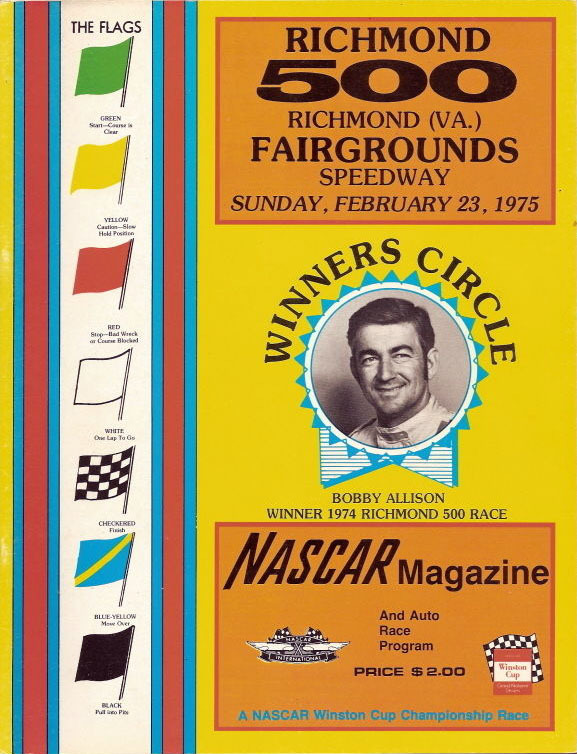 Toyota Owners 400 Race Publications March 3, 2025 Leave a Comment on Toyota Owners 400 Race Publications Posted in Auto Racing, NASCAR back to NASCAR Publications Click on any gallery image for the full-size version. 1970s 1974 Richmond 500 1975 Richmond 500 People 1974 Richmond 500: Richard Petty 1975 Richmond 500: Bobby Allison 1990s 1991 Pontiac Excitement 400 1996 Pontiac Excitement 400